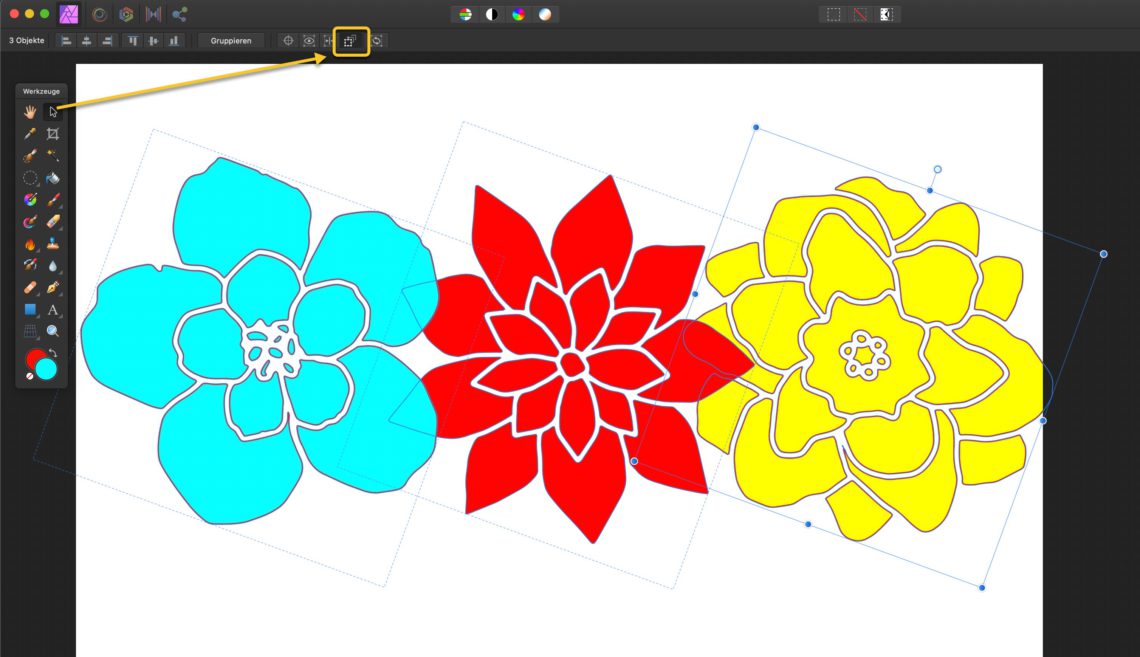 Affinity Photo: Mehrere Ebenen gleichzeitig individuell transformieren