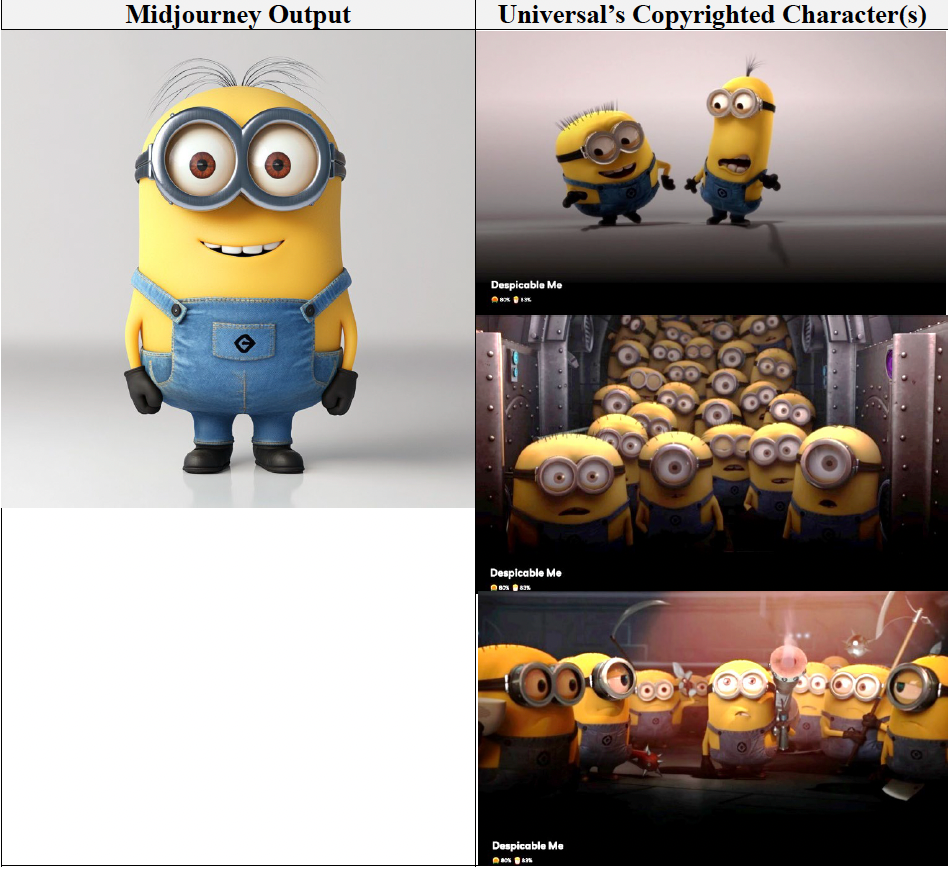 Dann geht es darum, ob es illegal ist, ein KI-Modell auf Zuruf Plagiate generieren zu lassen, also indem man im Prompt einen „Minion“ oder eine „Mickey Mouse“ verlangt und dann ziemlich genau diese Figur bekommt. Aber was ist, wenn das Ergebnis nur zum privaten Gebrauch gedacht ist? Was man damit anfängt, kann der Hersteller des KI-Modells ja nicht wissen. Und ich kann auch einen Minion zeichnen, ohne dass ich mich allein damit schon strafbar machte. Vielleicht ist also nicht das KI-Modell illegal, sondern nur ein Anwender, der es für die Anfertigung von Plagiaten nutzt?