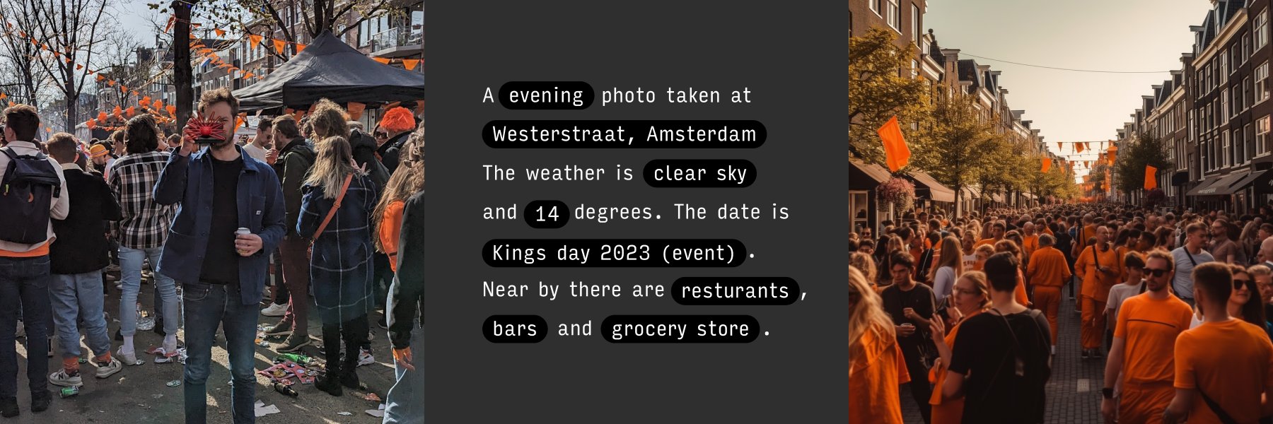 Mithilfe von Stable Diffusion wird aus dem erzeugten Prompt ein Bild generiert. Dieses hat freilich nichts mit der Szene direkt vor dem Fotografen zu tun. Erzeugt aber, zumindest nach den auf der Webseite und bei Twitter (siehe diesen Thread) gezeigten Beispielen, mögliche Interpretationen der Örtlichkeiten und aktuellen Geschehnisse:
