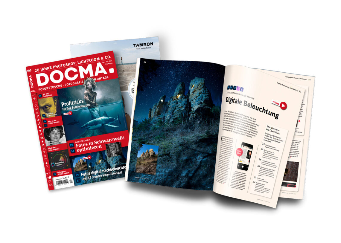 Darüber hinaus finden Sie in der neuen DOCMA 103 Freeload-Tipps- und -Tutorials, unsere Galerie mit den kreativsten Bildermachern der Welt sowie Hintergrundartikel und vieles mehr. Informieren Sie sich, indem Sie hier das Inhaltsverzeichnis laden.