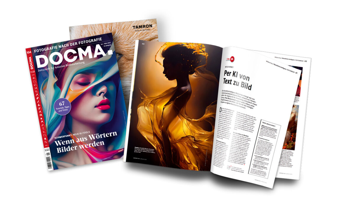 Darüber hinaus finden Sie in der DOCMA-Ausgabe 104 wie immer viele Tipps und Tricks sowie ausführliche Tutorials. So beschreibt Daimen Pape die Entstehung seiner Schnellmontage „Prinzessin der Hölle“ aus einem Studiofoto und einem in Photoshop erzeugten Feuerring. ∎ In Form von Tipps & Tricks stellen wir Ihnen die wichtigsten Neuerungen von Photoshop, Lightroom, Camera Raw, Luminar Neo und Capture One vor. ∎ Auf einer Doppelseite mit Freeloads finden Sie Links zu kostenlosem Download-Material und interessanten Videos für Bildbearbeiter und Fotografen. ∎ Lassen Sie sich zudem von kreativen Bildermachern inspirieren, die wir in der Galerie-Rubrik präsentieren.