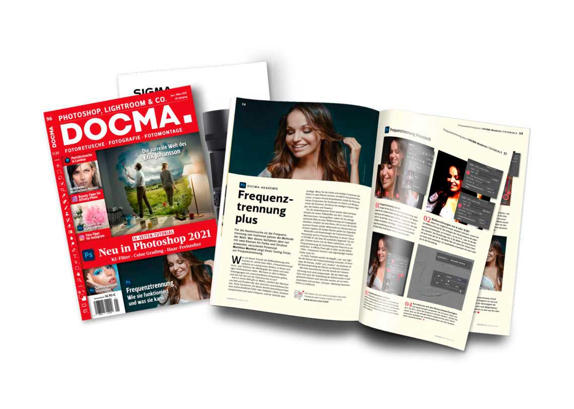 Auf 14 Seiten zum Photoshop-Update 2021 stellt Ihnen Olaf Giermann die neuen und verbesserten KI-Funktionen sowie viele weniger spektakuläre Verbesserungen, die man schon nach kurzer Zeit nicht mehr missen möchte, vor. Zwei Artikel befassen sich mit der Methode der Frequenztrennung: In der DOCMA-Akademie bekommen sie Tuning-Tipps für die Hautretusche in Photoshop, in einem weiteren Artikel erfahren Sie, wie Sie die Methode in Affinity Photo zum Schärfen einsetzen. Um die surreale Welt des Erik Johansson geht es in unserem Interview, für das Christoph Künne den Digitalkünstler in Prag besucht hat. Wie man Sommersprossen in der Porträtfotografie betont, beschreibt unsere neue Autorin Merle Niksch in einem Retusche-Tutorial. Wie Sie die KI-Werkzeuge von Luminar 4 für die Beautyretusche nutzen, erklärt Olaf Giermann ebenfalls in einem Tutorial. Doc Baumann hat die webbasierte KI-Software Artbreeder getestet und zeigt in einer Vielzahl von Bildern, was damit möglich ist. Eine kostenlose Photoshop-Aktion, mit der sich interessante Wasserfarben-Effekte erzeugen lassen, haben wir außerdem ausprobiert. Daneben gibt es wie in jeder Ausgabe Freeload-Tipps, Webklicks, die Rubrik Leser fragen – DOCMA hilft sowie technische Hintergrundartikel und vieles mehr. Das komplette Inhaltsverzeichnis finden Sie hier.