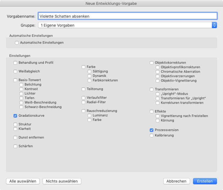 Aber da ich schon mal beim Thema „Vorgaben“ bin, habe ich noch einen Tipp dazu – genauer gesagt zu Vorgaben, die eine Anwendung der »Gradationskurve« speichern.