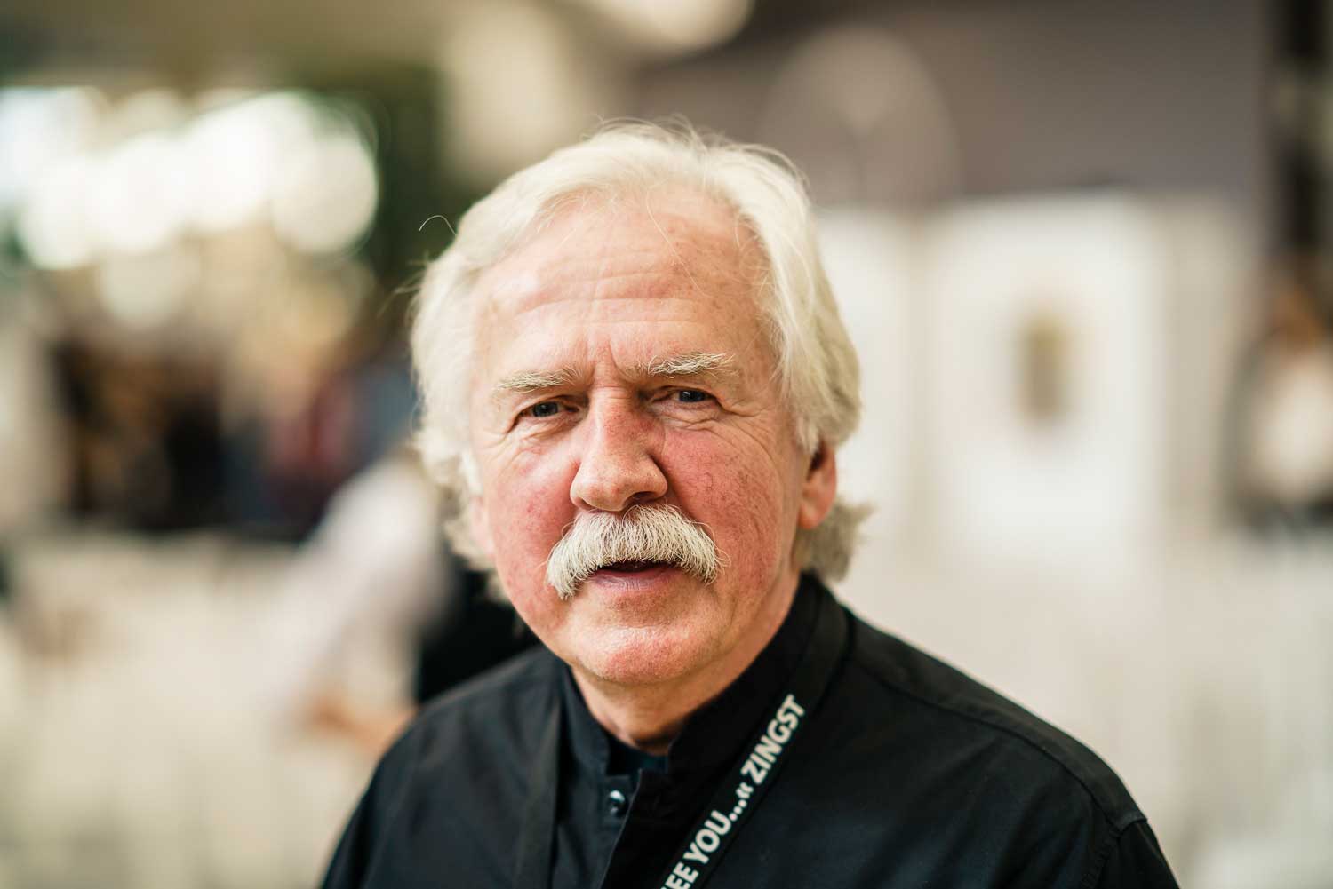 Die Eröffnung des Festivals findet traditionell im Zingster Hotel „Vier Jahreszeiten“ statt, in dem auch gleich noch mehrere bildgewaltige Fotoausstellungen untergebracht sind. Man trifft dort rund 400 Personen, die zunächst sitzend und stehend andächtig den Reden lauschen. Später bilden sich Grüppchen, um für rund eine weitere Stunde die große, lichtdurchflutete Empfangshalle zu bevölkern. Technisch sind so lichtstarke Objektive wie unsere Testkandidatin hier nicht unbedingt nötig, aber die abstrahierende Hintergrundgestaltung mit weit geöffneter Blende verleiht den Ergebnissen sozusagen „Charme auf Knopfdruck“.