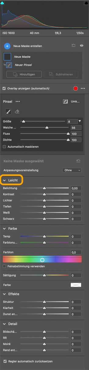 Man muss sich bei dem neuen Maskierungssystem nur kurz umgewöhnen, da Änderungen nun Masken-Ebenen und nicht mehr einzelnen Werkzeug-Pins zugeordnet sind. Hat man diese Änderungen einmal verinnerlicht, stehen Ihnen nicht nur neue KI-basierte Auswahlen für »Motiv« und »Himmel« zur Verfügung, sondern Sie sind auch viel flexibler beim Erzeugen von Masken, da sich alle Werkzeuge frei und nondestruktiv kombinieren lassen. Nach erster Skepsis hat mich das neue System trotz kleinerer Detailschwächen überzeugt.