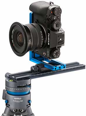 Wie sorgen Sie nun dafür, dass sich Kamera und Objektiv um den parallaxfreien Drehpunkt drehen? Sie benötigen eine Panorama-Montierung, wie sie verschiedene Hersteller anbieten. Neben einer Panoramaplatte, mit der sich die Kamera in einstellbaren Schritten drehen lässt, gehören dazu zwei Einstellschlitten, mit denen Sie die Kamera ausrichten können. Als erstes verschieben Sie die Kamera nach links oder rechts, bis die optische Achse des Objektivs über der Drehachse liegt. Das geht recht gut nach Augenmaß.