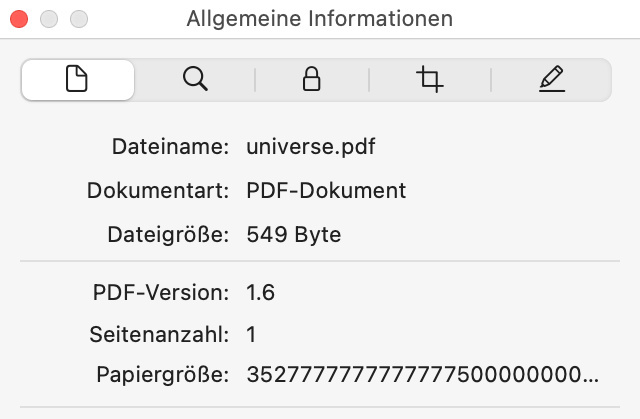 Wie groß kann ein PDF-Dokument werden? Genauer gesagt: Wie groß kann die Fläche einer Seite des Dokuments sein? Rund 381 Kilometer im Quadrat oder 40 Prozent der Fläche Deutschlands, ist häufig zu lesen, aber tatsächlich kann es auch noch viel größer werden – größer als das sichtbare Universum.