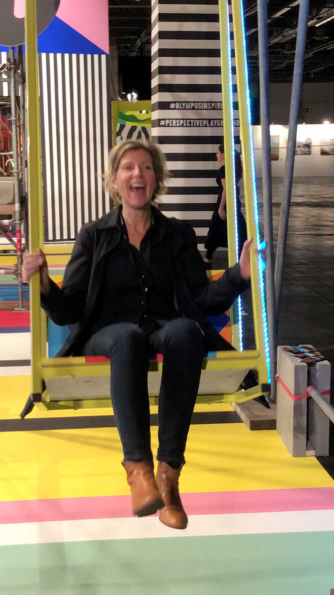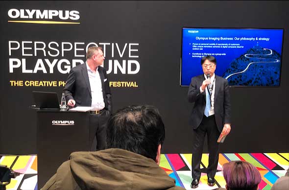 Der letzte Termin auf dem Messegelände war auf dem Olympus-Stand in Halle 1. Die Halle, die in früheren Jahren von Leica bespielt und für Fotoausstellungen genutzt worden war, beherbergt diesmal neben dem eigentlichen Olympus-Stand, an dem man sich Kameras und Objektive anschauen kann, den beliebten Olympus-Playground – der diesmal der „Perspective Playground“ ist und mit Perspektiven spielt. Dort kann man sich eine Olympus-Kamera ausleihen und auf dem Playground ausprobieren, was ich dann auch tat. Die Pressekonferenz war ohnehin kurz gehalten; die Kernbotschaft war, dass sich Olympus zu Micro-FourThirds und den Stärken dieses Systems bekennt; es gab keinerlei Hinweis darauf, dass sich Olympus wie sein MFT-Partner Panasonic auch für größere Formate interessieren könnte.