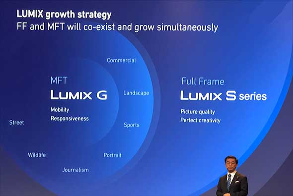 Micro-FourThirds wird natürlich weiterentwickelt; Panasonic sieht die Vorteile dieses Systems bei den Kriterien „Mobility“ und „Responsiveness“ und empfiehlt es für Genres wie Wildlife, Street, Journalismus und Sport. Auch im MFT-Segment gab es eine Neuigkeit, das mit Leica entwickelte Weitwinkelzoom DG Vario-Summilux 10–25 mm mit einer Lichtstärke von durchgehend f1.7. Wann und zu welchem Preis dieses Objektiv auf den Markt kommen wird, gab Panasonic noch nicht bekannt.
