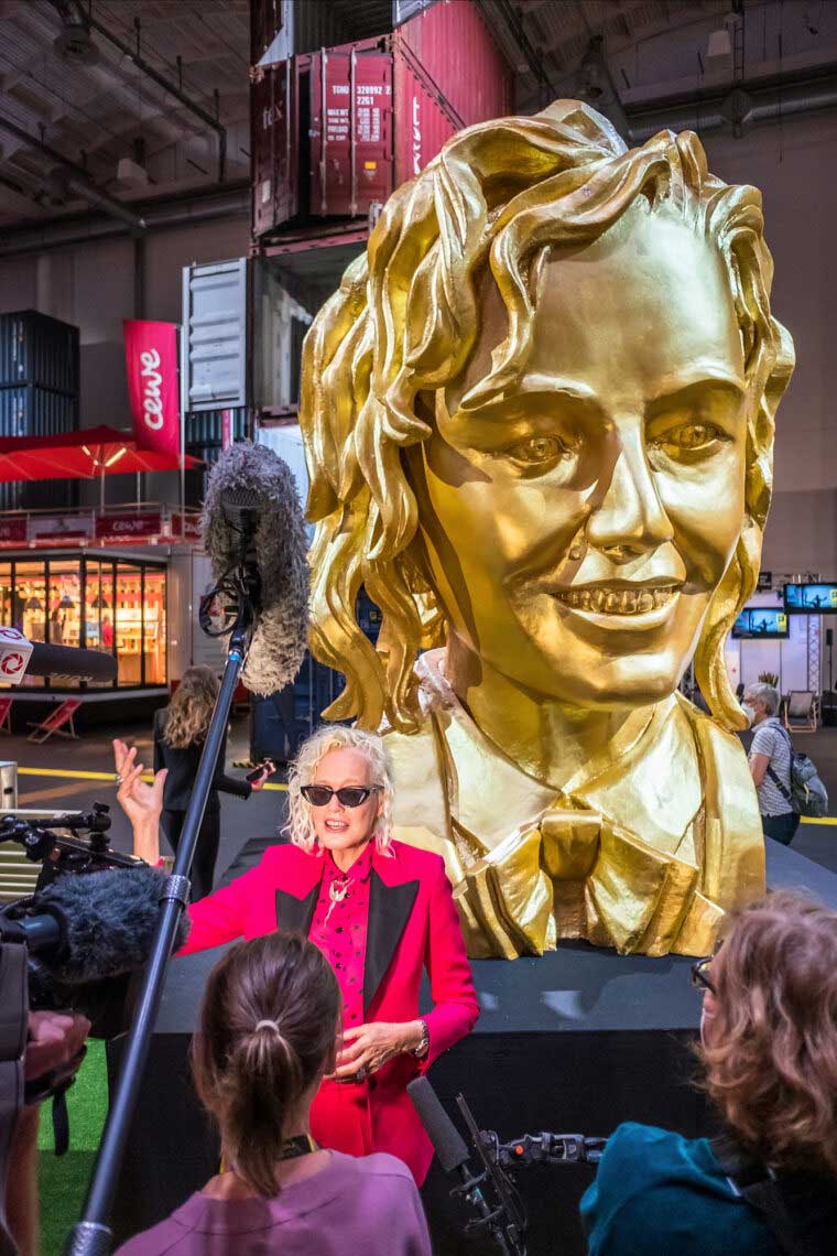 Während der Eröffnung der Messe enthüllte Schirmherrin Ellen von Unwerth, deren Fotos einen durch die Gänge der Messehallen begleiten, vier riesenhafte goldene Skulpturen, sah sich die Musikerporträts von Tine Acke an und hielt Hof. Die folgenden Bilder mit Ellen von Unwerth, Tine Acke, Messechef Bernd Aufderheide, Kultursenator Carsten Brosda, Guido Krebs (Canon) und anderen geben einen Eindruck vom ersten Tag.