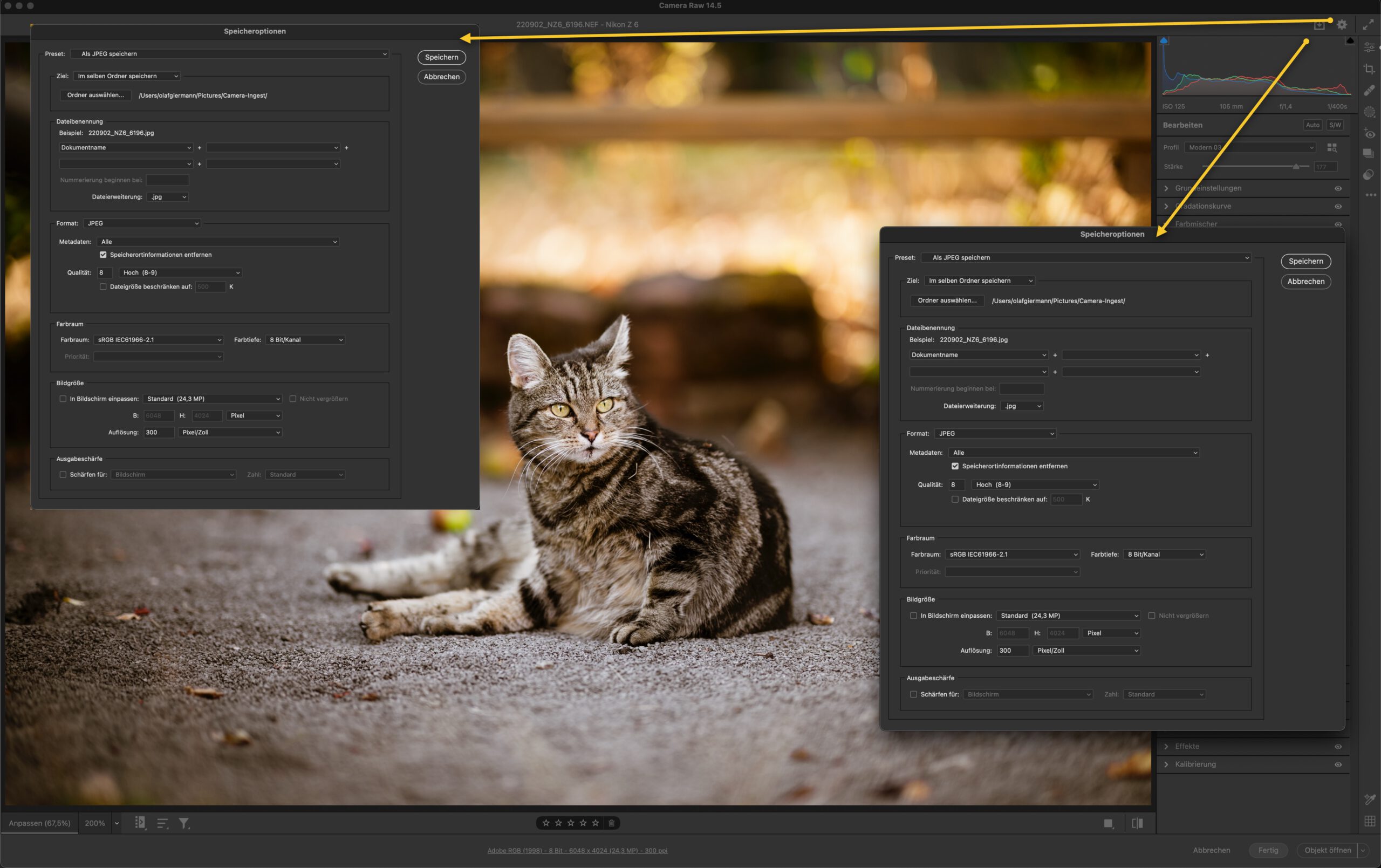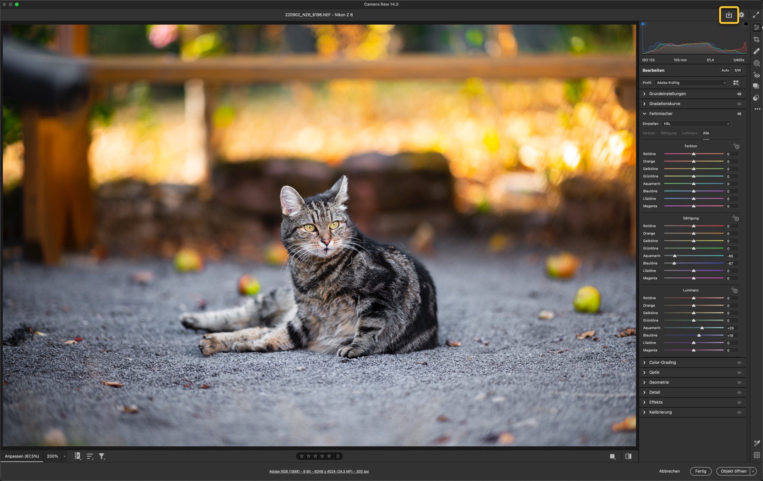 Klicken Sie zu guter Letzt im Dialog auf »Speichern«, um die Fotos zu exportieren und in Camera Raw dann noch einmal auf »Fertig«, um die Entwicklungseinstellungen als XMP-Daten zu speichern.
