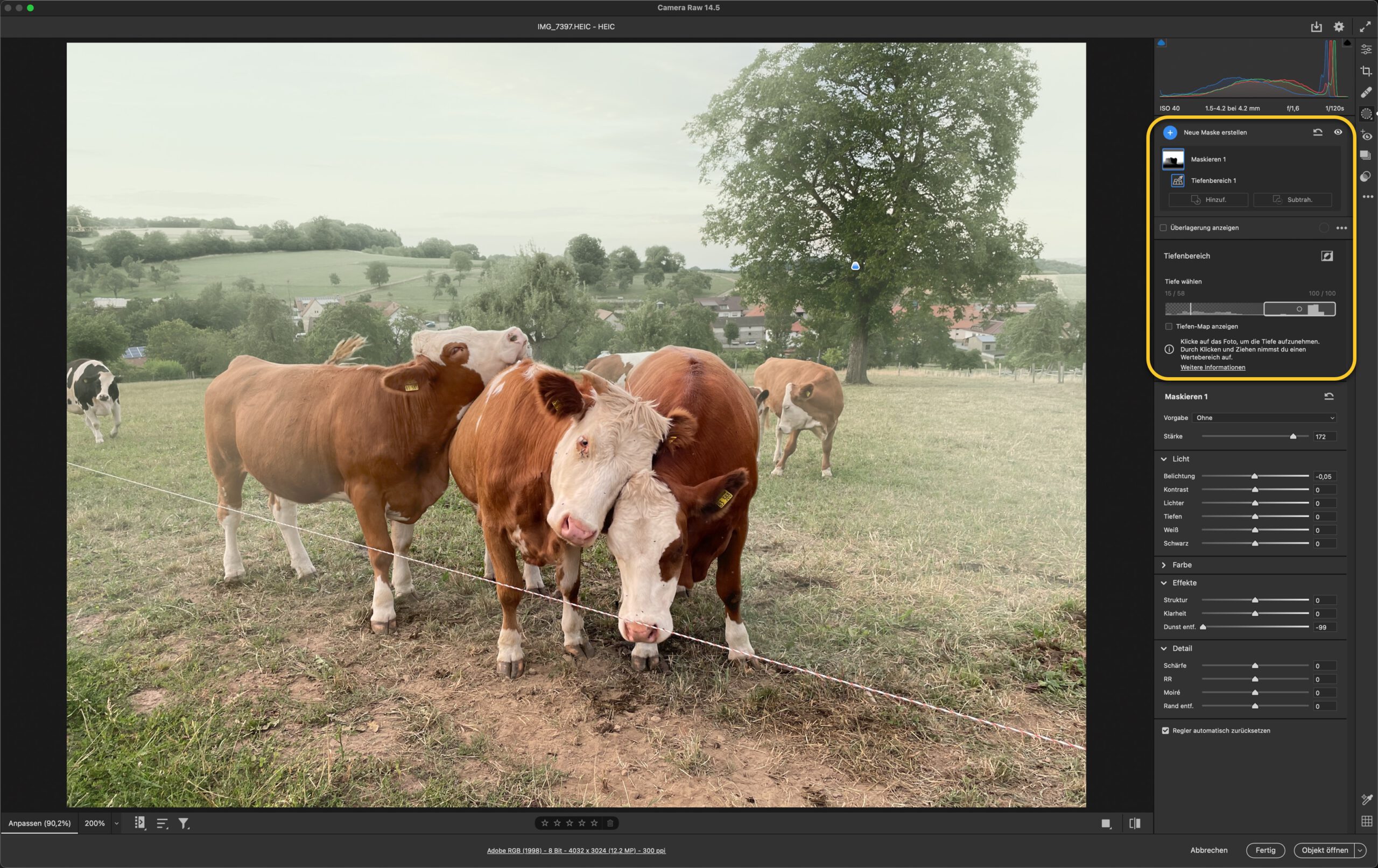Mit den immer besser werdenden Maskierungsmöglichkeiten in Lightroom und Camera Raw ist es meist kaum noch notwendig, Fotos zur Optimierung in Photoshop zu öffnen. In Lightroom und Lightroom Classic wird bei jedem unterstützten Dateityp automatisch die Adobe-Camera-Raw-Engine zur Bildbearbeitung eingesetzt. In Photoshop können Sie nach dem Öffnen von JPEG-, HEIC- und TIFF-Dateien zwar den »Camera Raw-Filter« dafür nutzen. Mit diesem bearbeiten Sie jedoch nur Einzelbilder. Außerdem verlieren Sie im Fall der HEIC-Fotos die Möglichkeit, eine etwaige Tiefenkarte als Bereichsmaske zu verwenden.