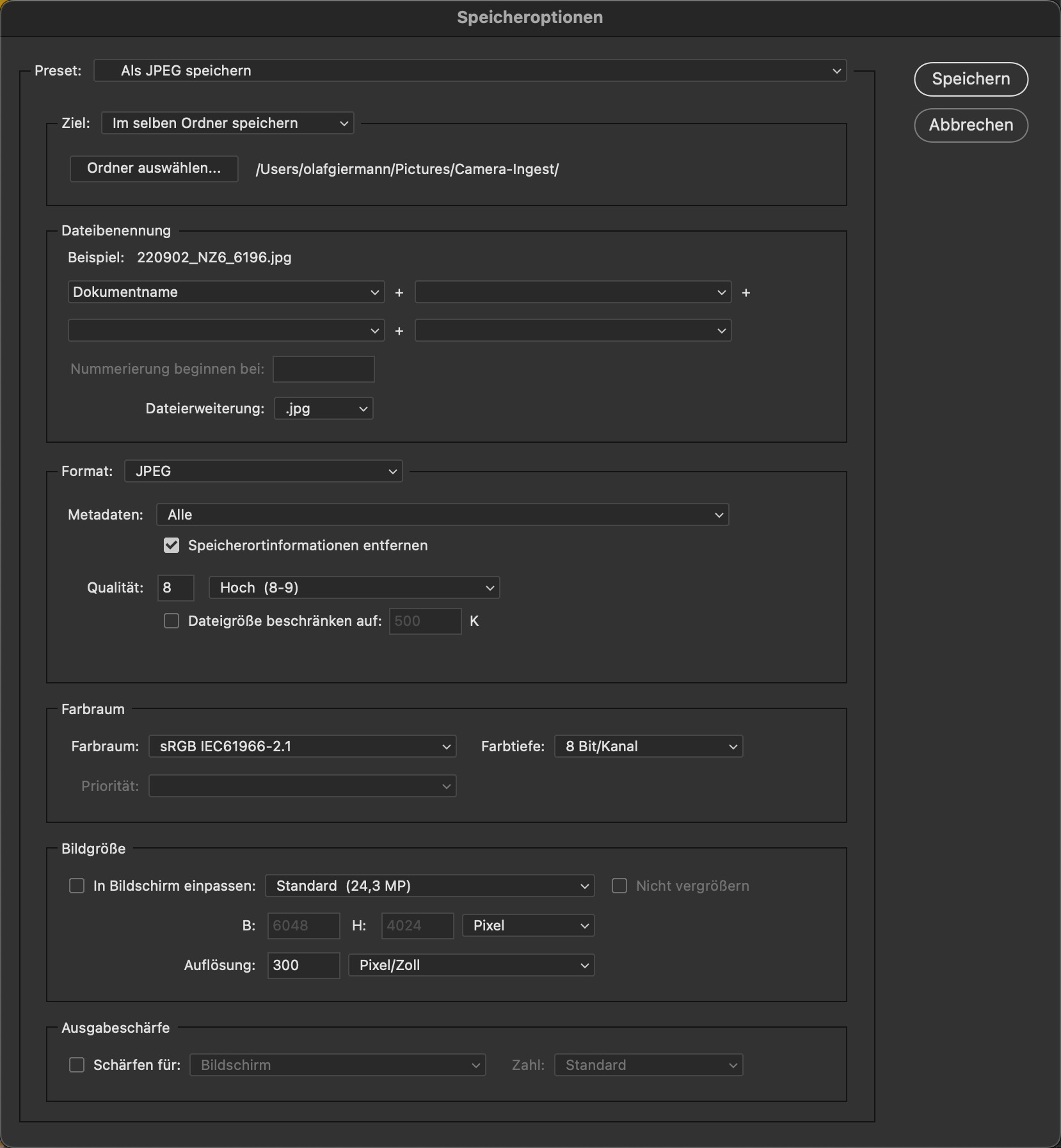 Mal eine kleine Voreinstellungsempfehlung zum Wochenende – alle unterstützten Fotos mit Camera Raw öffnen und speichern:
