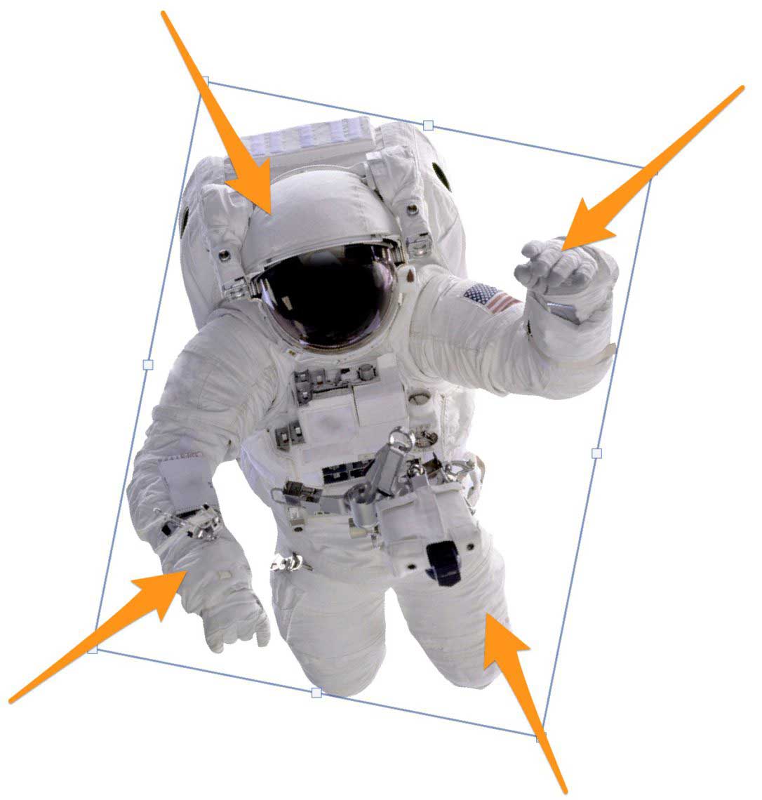 Aber auch das war jetzt immer noch nicht alles. Denn das Transformieren wird nun automatisch bestätigt, wenn Sie mit ein paar Pixeln Abstand zum Transformieren-Rahmen ins Bild klicken. Das erste Blöde daran: Mal eben »Strg/Cmd-T«, irgendwo hinklicken & ziehen, um den Ebeneninhalt zu drehen, ist jetzt Geschichte. Sie müssen peinlich genau darauf achten, nahe am Transformationsrahmen zu bleiben. Das ist ja noch hinnehmbar, denn ähnlich funktioniert das Drehen ja auch in Illustrator, InDesign und vielen anderen Programmen. Das zweite Blöde daran ist aber, dass sich der Abstand beim Drehen eines Objekts ändert, da immer nur die aufrechte Bounding-Box berücksichtigt wird. Je nach Drehwinkel und Objektform, sowie je nachdem ob Sie sich nahe einer Ecke befinden oder nicht, ändert sich also der Abstand, bei dessen Überschreitung Sie die Transformation automatisch bestätigen. Die Änderung des Cursors ist dabei ziemlich unauffällig, so dass man – ich zumindest – ständig ungewollt, die Transformation anwendet, alles rückgängig machen muss und von vorn anfangen kann. Für mich persönlich ist das die nervigste Änderung seit Beginn der „Photoshop-Aufzeichnungen“ ( 😉 ).