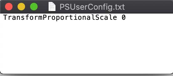 - Schreiben Sie TransformProportionalScale 0 in die Datei.