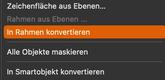 Im Kontextmenü von Ebenen (Rechtsklick auf eine Ebene) können Sie jedoch den Befehl »In Rahmen konvertieren«: