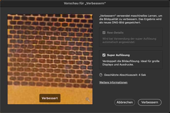 Photoshop hat auf den neuen Macs mit M1-Chip die Beta-Phase (fast) verlassen und Camera Raw bietet eine neue Funktion für die Bildvergrößerung, die auf Maschinellem Lernen basiert.