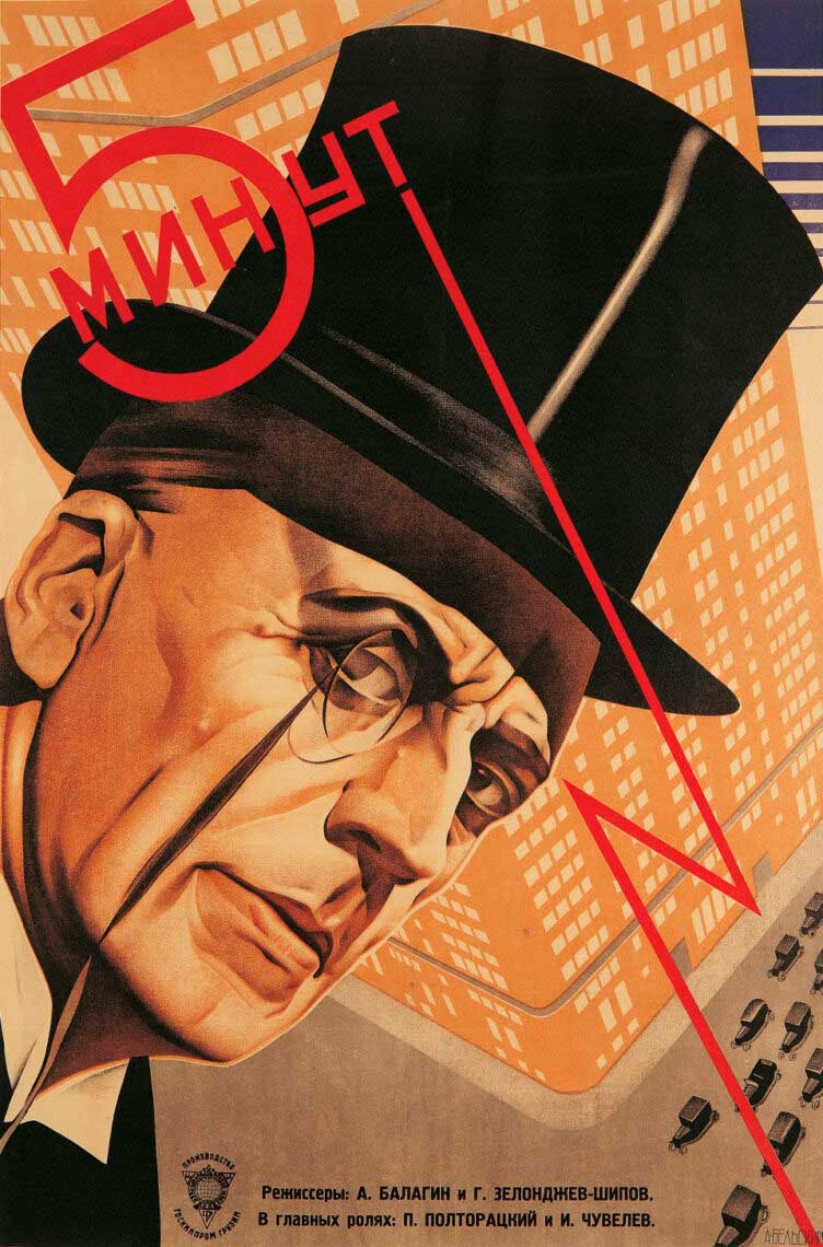 Bildunterschrift: Nikolai Prusakov, Film poster for Pyat minut, 1929