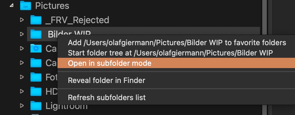 Meine bevorzugte Software für das schnelle Culling, der FastRawViewer, erlaubt ebenfalls die Anzeige der Inhalte von Unterordnern über den sogenannten „Subfolder mode“: