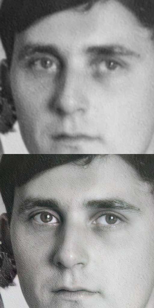 Aber wenn man die abgebildeten Personen und Szenen kennt und der Algorithmus für Sie keine fremden Personen erschaffen hat, dann hilft er dabei, Ihre alten Fotos in frischem Glanz erstrahlen zu lassen.