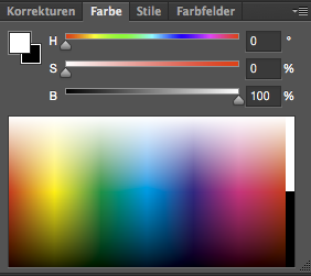 Schneller geht die Farbwahl schon mit der Farbe-Palette, die aber bis zu ihrer Überarbeitung in Photoshop CC eine ziemliche Krücke mit nur einem schmalen Farbwahl-Feld war. In den aktuellen Versionen könnt Ihr die Darstellung jedoch über das Palettenmenü ändern und den Farbwahl-Bereich beliebig vergrößern.