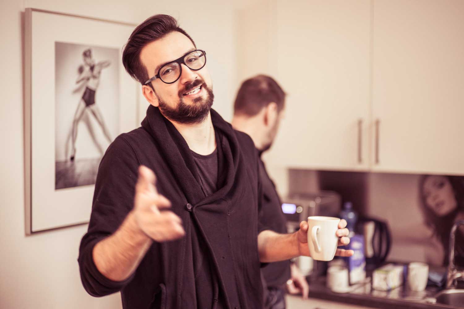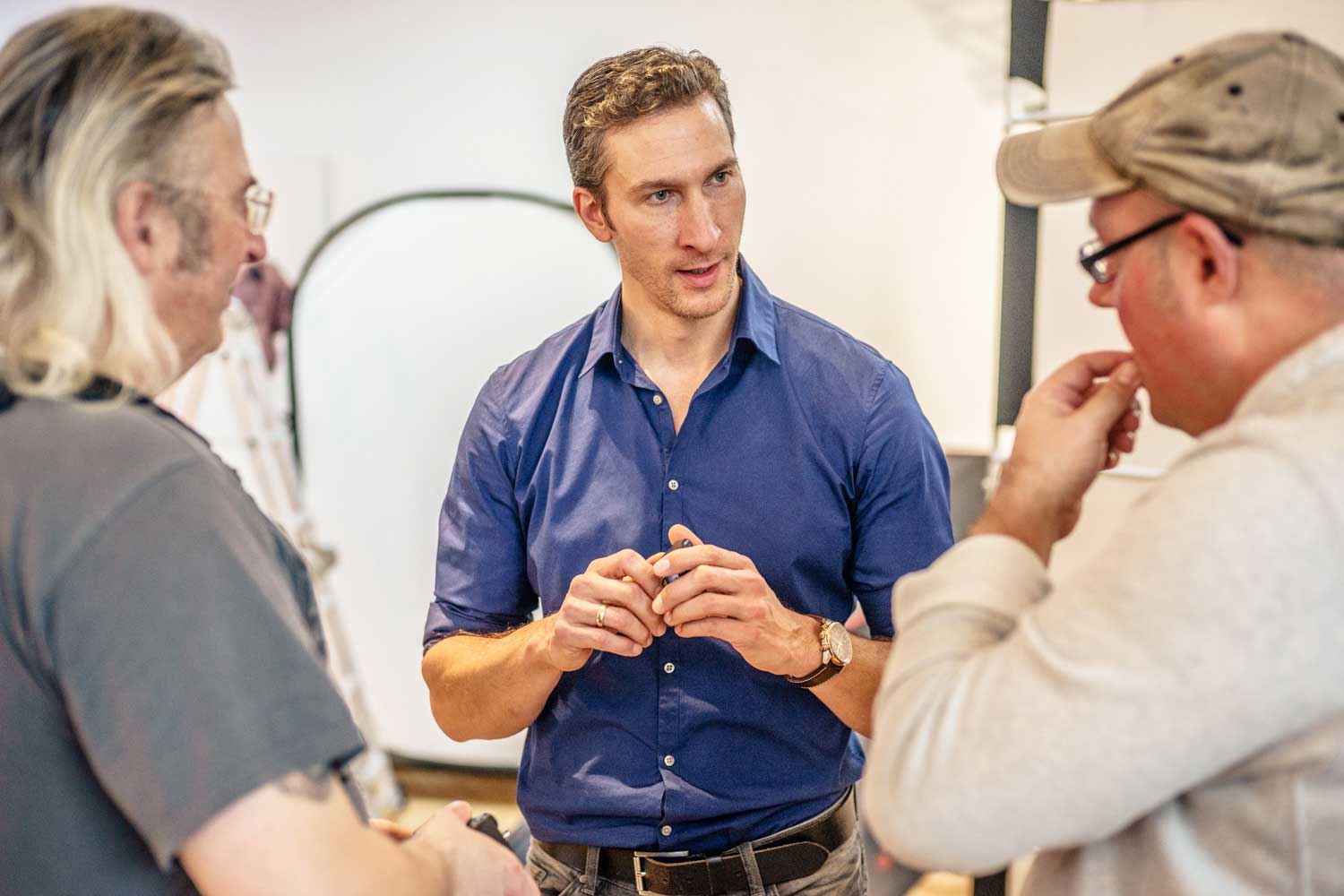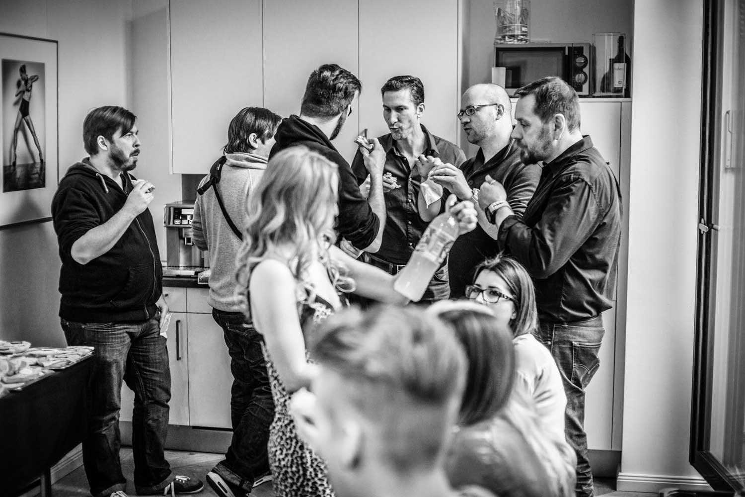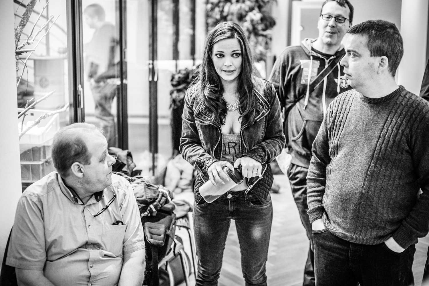 Kurz vor dem Start: Die Organisatoren Alexander Heinrichs (li.), Sven Doelle (re.) und viel Beauty-EquipmentDas große Vorbereiten: Kerstin Hoppe schminkt Playmate Noelle MondoloniElvira Igrineva schminkt Playmate Sarah DomkePlaymate Sarah Domke post sich warm.Fotograf Sacha Hüttenhein instruiert ein Teilnehmer-TeamMartin Krolop erklärt am praktischen Beispiel.DomQuichotte beim Kaffee-FassenMadelaine Handle – am ersten Tag als Making-of-Fotografin unterwegs…… und am zweiten Tag dann selbst als Model im Ring.Hier sieht man das ganze Set zum Model-Bild von Madeleine, an dem Matthias Schwaighofer einen Team die Aufnahmetechnik erläutert.Danach war eine Zigarettenpause im Atrium des Ateliers angesagt.In dem kleinen Innenhof bleib man selten allein, denn Raucher sind gesellige Menschen.Fotograf Peter Hawk hatte in diesem Moment allerdings mehr für belegte Wurst- als für dampfende Lungenbrötchen übrig.Mittagspause mit Playmate Franzy BalfanzErregte Fachgespräche am Brötchenbuffet.Studioimpression: Es müssen nicht immer Playmates sein.Haarteil-Probe: Martin Krolops Begeisterung angesichts dieser neuen Frisur ist deutlich erkennbar.Farbiges Dauerlicht im Fahrstuhl…… mit Playmate Franzy BalfanzMisch-Lichtset bei Krplop und Gerst mit der horizontal arrangierten Playmate Sarah Domke.Blick über eine Fotografenschulter auf Playmate Barbora Kuzmiakova.Immer gut gelaunt und maximal gelenkig: Playmate Annetta NegarePlaymate noch einmal mit viel Text auf dem Rücken.Am Ende des ersten Workshoptages wurde noch ausgiebig über die entstandenen Drucke diskutiert. Rechts im Bild Murat Ermiel von Fotolia.Es geht nicht nur um gutes Licht und schöne Frauen, es kommt machnmal auch auf andere Inhalte an.