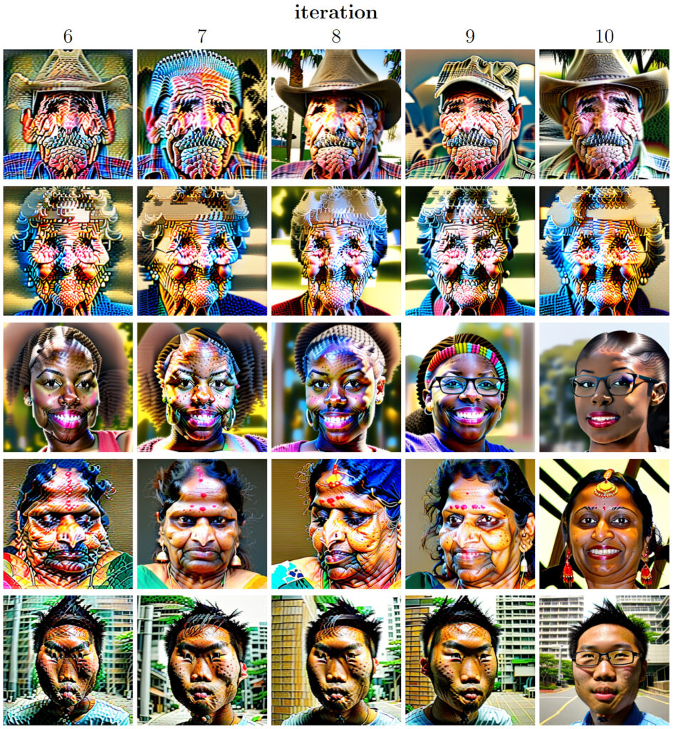 Das HAuptproblem dürfte eben darin zu sehen sein, daß die „KI“ EBEN NICHT!! „intelligent“ IST! Die „KI“ ist eben nicht in der Lage, selber zu erkennen, daß jedes der obigen Portraits von denen weiter rechts eben NICHT einem natürlichen Menschenkopf entspricht. Natürlich nur, wenn nicht ausdrücklich ein „Monster“ oder ein surreales Bild entstehen sollte. Die „KI“s haben alle keinerlei Allgemeinwissen. Nicht das mindeste. Deswegen scheitern sie, mit 6 Fingern, 3 Beinen, nur einem Bein und das andere losgelöst irgendwo anders im Bild usw usw usw usw usw. Sie sind alle nur dumm.