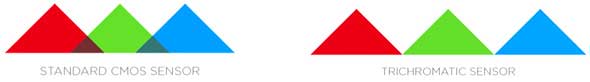 „Wären die Sensorpixel tatsächlich so empfindlich für Infrarot, wie es das Diagramm für den herkömmlichen Sensor suggeriert, würde der infrarote Anteil des Lichts die Farben dramatisch verfälschen.“