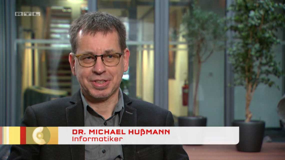 Aber dann war da noch die irritierende Einblendung, die mich als „Dr. Michael Hußmann“ auswies – mein einziger akademischer Grad ist ein Diplom in Informatik; einen Doktortitel hat hier nur Doc Baumann. Weiß der Himmel, weshalb RTL auf die Idee kam, mich zu promovieren …