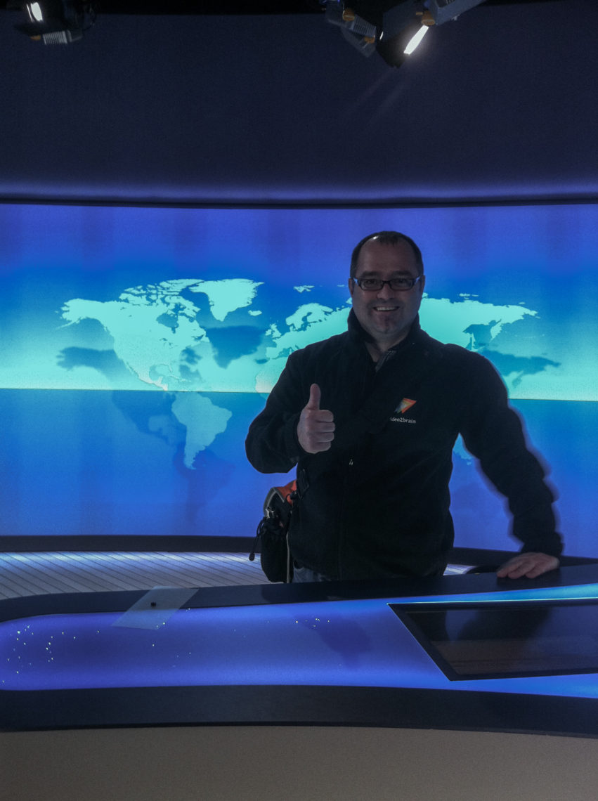 Im Tagesschau-Studio in Hamburg nach einer Woche Schulung der NDR-Mediengestalter.