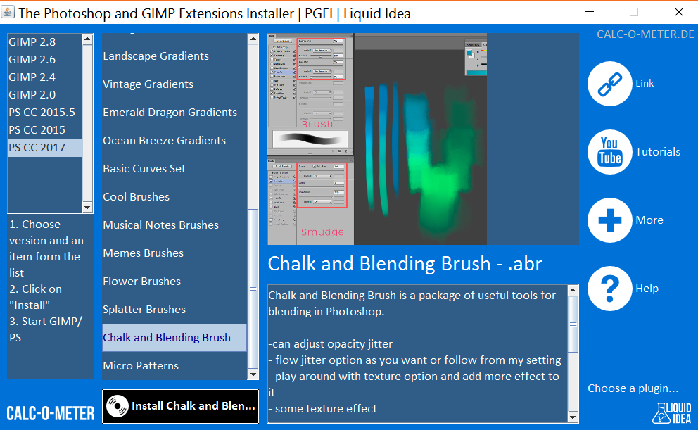 Ich möchte Ihnen noch ein paar Erweiterungen von Photoshop vorstellen, mit denen Sie wertvolle Zeit sparen können. Calc-O-Meter bietet die Möglichkeit, genau diese Erweiterungen, von Pinseln über Scripts bis hin zu Plug-ins zu downloaden und zu installieren.
