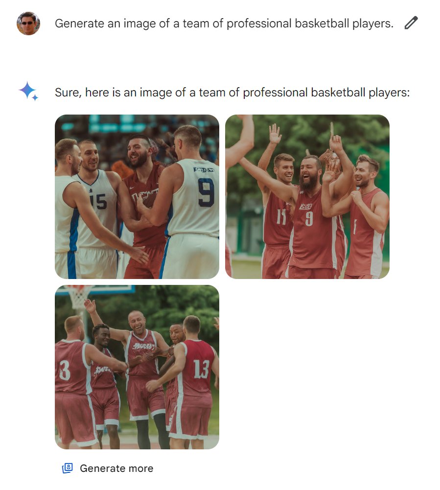 Mir ist die zwanghafte Diversität bei Adobe Firefly neulich bei einem Privat-KI-Coaching zum ersten Mal richtig störend aufgefallen. Wir wollten verschiedene Bilder rund um Fußball generieren, aber es war kaum möglich, eben nicht-diverse Gruppen zu erzeugen, die zum Beispiel für das nachträgliche Einsetzen der echten Porträts notwendig gewesen wären.