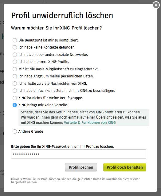 Genau der richtige Schritt! Doch: ich will bei Xing kündigen und finde nicht den richtigen Button dazu. Wie muss man es anstellen, um da herauszukommen? Freue mich über jeden Tipp, danke!