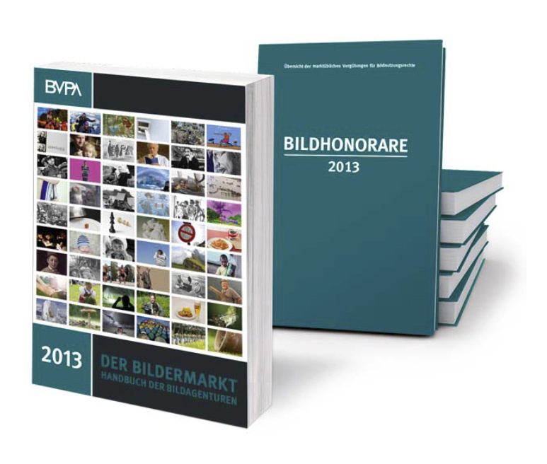 Die Broschüren BILDHONORARE und DER BILDERMARKT 2013 werden ab dieser Woche ausgeliefert. Mit BILDHONORARE 2013, der Gesamtübersicht für Bildnutzungsrechte, will der BVPA Bildanbietern und Bildkäufern eine Berechnungsgrundlage für die Honorargestaltung an die Hand geben. Mit ihrem umfangreichen Medienregister dient die Broschüre Agenturen, Fotografen oder Kanzleien für Urheber- und Medienrecht als Standardwerk zur Ermittlung marktüblicher Vergütungen für Bildnutzungsrechte. Die Broschüre erscheint in einem neuen übersichtlichen Layout und wurde dem aktuellen Markt angepasst (u.a. neu Social-Media-Nutzungen, multimediale Nutzungen in Museen).