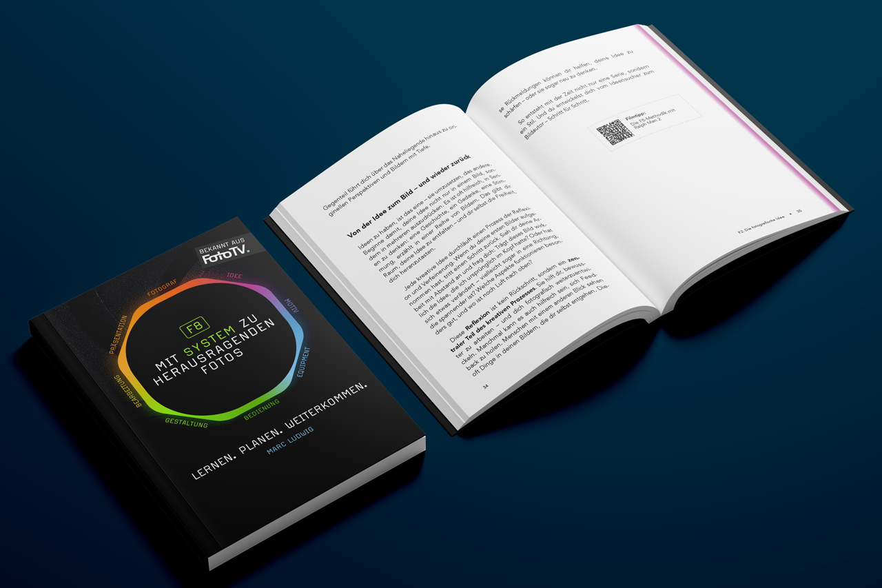 M.L.: Ich habe das F8-System schon vor zwei Jahren bei FotoTV. vorgestellt und dort auch viel Feedback gesammelt. Aber ein Buch ermöglicht eine andere Tiefe. Die Aufmerksamkeitsspanne bei Online-Videos ist oft kurz – ein Buch gibt Raum für komplexere Gedanken. Trotzdem liefern wir viele Inhalte auch per Podcast und Video – jeder kann sich das Medium wählen, das ihm am besten liegt.