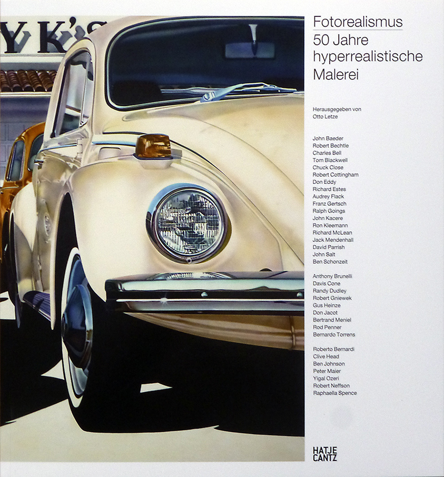 Es ist lange her, seit die 5. Kasseler documenta 1972 den Photorealismus auch hierzulande bekannt machte. Das Besondere an den großformatigen Gemälden von Robert Bechtle, Chuck Close, Don Eddy, Richard Estes, Franz Gertsch und anderen war ihre scheinbar detailgenaue Wiedergabe der sichtbaren Realität. Das Gemalte ließ sich auf wenige Schritte Entfernung von einem Foto nicht unterscheiden. Es ist jedoch etwas fragwürdig, diese Richtung im Buchtitel – der gleichzeitig der der Tübinger Ausstellung ist, die im März endete – allein als „hyperrealistisch“ zu kennzeichnen. Denn „fotorealistisch“ sind die typischen Werke weniger wegen ihres Verismus als vielmehr wegen ihrer Übernahme fotografischer Sichtweisen. (Dass dabei keineswegs Fotos 1:1 abgepinselt werden, sondern arrangiert und eliminiert, auch abstrahiert wird, sollte man ebenfalls wissen.)