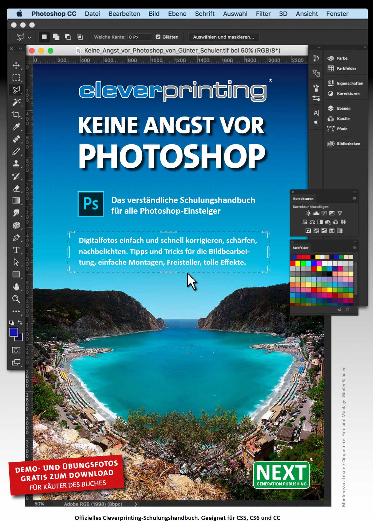 Der Schulungsanbieter Cleverprinting bietet das Handbuch Keine Angst vor Photoshop ab sofort neben der gedruckten Ausgabe auch als kostenloses Screen-PDF an.