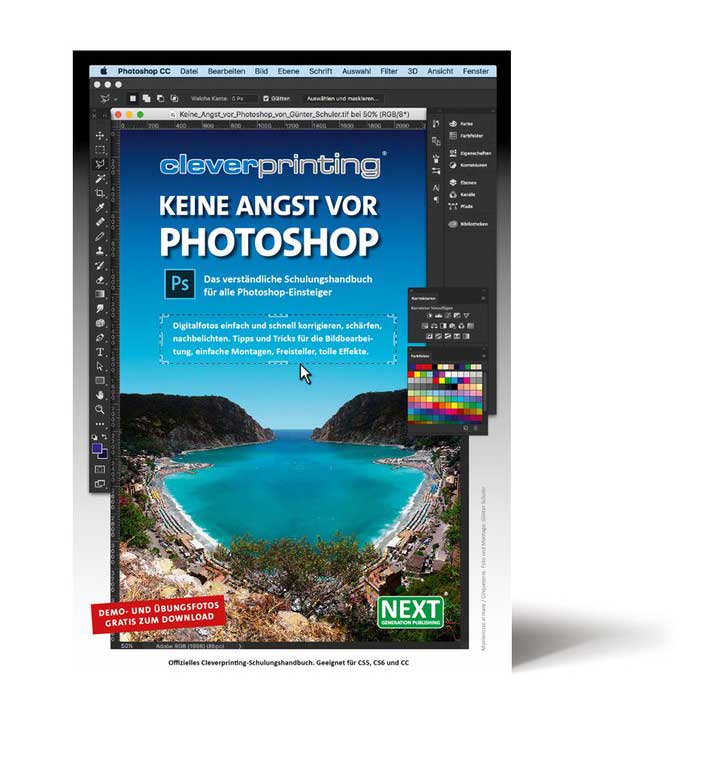 Der Schulungsanbieter Cleverprinting kündigt mit „Keine Angst vor Photoshop“ ein für Photoshop-Einsteiger konzipiertes Handbuch an, das sich besonders an Mediengestalter-Azubis und Grafikdesign-Studenten richtet, aber auch Hobbyfotografen die Berührungsängste mit dem komplexen Bildbearbeitungsprogramm nehmen soll. Geschrieben wurde das 180 A4-Seiten umfassende Handbuch von Günter Schuler.