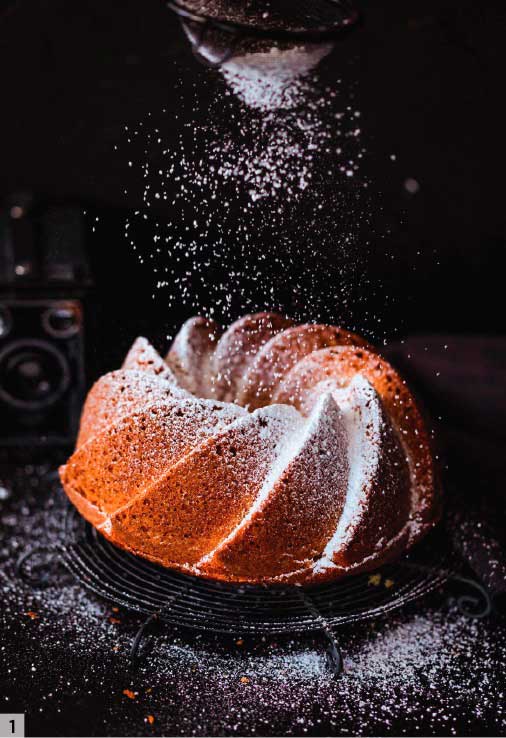 Die Top-View [5] ist seit dem Erfolg von Instagram nicht mehr aus der Foodfotografie wegzudenken – die direkte Perspektive von oben liefert mit Smartphones die beste Qualität, denn es gibt wenige Verzerrungen und kein Problem mit der Freistellung. In Zeitschriften, Büchern und in der Werbung war sie lange kaum zu finden, ist aber mittlerweile auch dort gang und gäbe. Optimal bietet sie sich etwa für sehr flaches Gebäck an, das hauptsächlich auf der Oberfläche interessant ist. Einblick in die Schichten des Gerichts können Sie liefern, indem Sie es anschneiden und das abgeschnittene Stück auf die Seite legen.