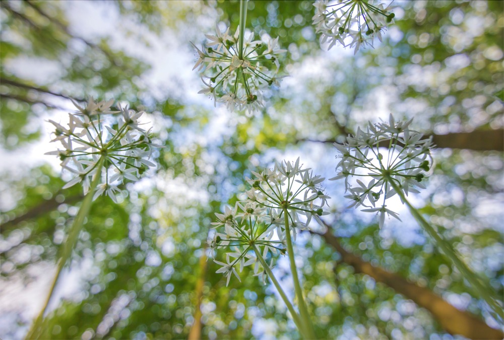 Von unten sehen die Bärlauchstängel wie die kleinen Geschwister der riesigen Buchen über ihnen aus. (Fotos: Christine Averberg). Makrofotografie
