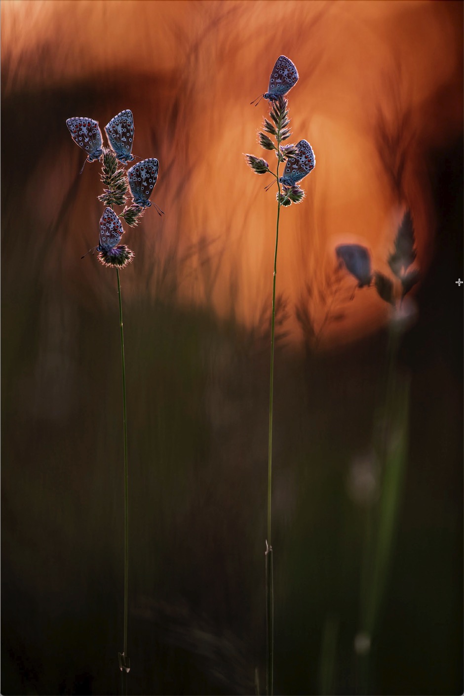 Eignen Sie sich umfassendes Wissen um die Flora und Fauna in Ihrer Umgebung an. So laufen Sie nicht los, wenn noch keine Schmetterlinge fliegen, nur weil andere Fotografinnen und Fotografen aus südlicheren Regionen längst tolle Bilder machen. Schmetterlinge sind flatterhafte Wesen: Sobald man einen gefunden hat und sich vorsichtig anschleicht, um ein Foto zu erhaschen, fliegt er auch schon wieder fort. Tagsüber einem Falter hinterherzurennen, führt selten zum Erfolg. Begeben Sie sich besser auf die Suche, während die Falter schlafen, also in der Regel frühmorgens oder abends (3). Früh am Morgen sind sie vielleicht sogar mit Tautropfen bedeckt. Sie sollten jedoch noch vor Sonnenaufgang Ihr Motiv gefunden haben. Abends können Sie beobachten, wo sich die Falter zur Ruhe niederlassen, und sie so einfacher finden. Aber Vorsicht! Es dauert oft lange, bis sie wirklich „schlafen“.