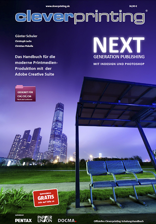 Der Schulungsanbieter Cleverprinting hat eine Neuauflage seines Publishing-Handbuches veröffentlicht. Als kombiniertes Photoshop-, InDesign- und PrePress-Handbuch beschränkt es sich nicht darauf, neue Funktionen der CS6 vorzustellen. Vielmehr stellen die Autoren Schuler, Luchs und Piskulla neue, zeitgemäße Arbeitstechniken in den Vordergrund, die sie als "Next Generation Publishing" umschreiben.