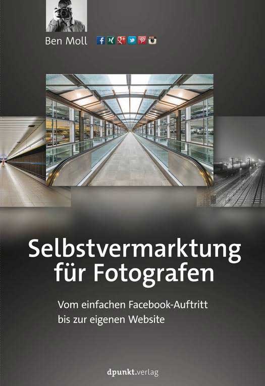 Fotografen müssen sich heute auf anderen Wegen vermarkten, als dies noch vor wenigen Jahren üblich war. Ben Moll hat einen Leitfaden für die Online-Selbstvermarktung fotografischer Dienstleistungen verfasst, der alle wesentlichen digitalen Kanäle abdeckt. Nachdem es zunächst darum geht, wie man seine Bilddaten in Photoshop und Lightroom richtig vorbereitet, lernt der Leser in einzelnen Kapiteln die wichtigsten digitalen Plattformen kennen: Google, Youtube, Facebook, Twitter, Instagram, Pinterest und Xing. Zum Schluss geht es um die eigene Webseite, um Kommunikationsstrategie, Suchmaschinenmarketing und um Kunden-Newsletter.