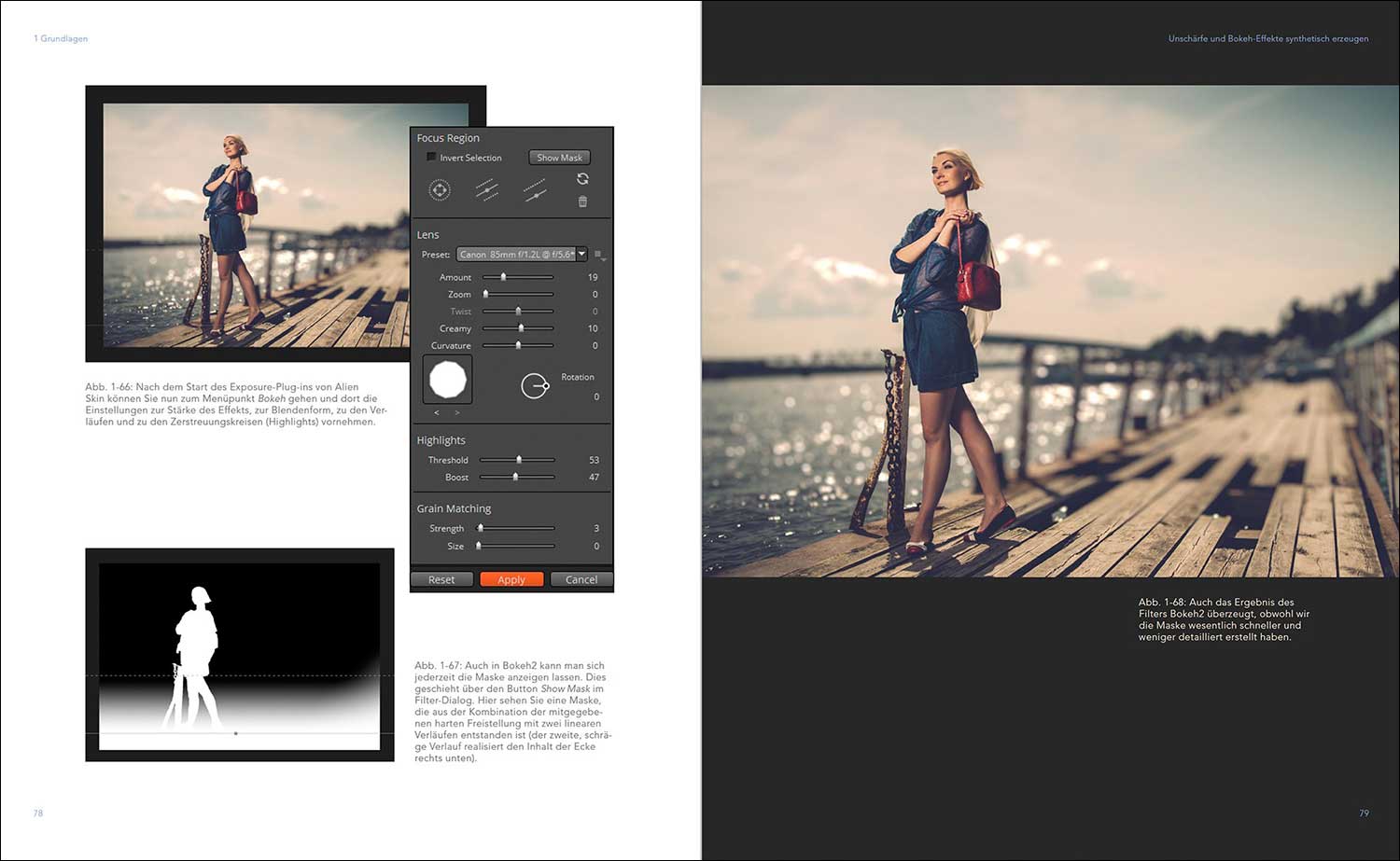 Einen Leitfaden für den Einsatz unscharfer Hintergründe, umgangssprachlich heute oftmals nicht ganz korrekt als „Bokeh“ bezeichnet, hat DOCMA-Autor Tilo Gockel jetzt in Buchform verfasst. Darin geht es nicht nur um die richtigen Objektive für perfekte oder interessante Hintergrund-Unschärfe-Effekte, sondern auch um Aufnahme- und Nachbearbeitungstechniken. Gockel erklärt für Fotografen, wie man unschärfebetont „tiltet“, den Einsatz von Lensbaby-Objektiven, „Freelensing“ und wie man „Bokehrahmen“ aufnimmt. Auch Photoshopper kommen auf ihre Kosten, spätestens wenn es um die synthetische Erzeugung von Unschärfen geht und die Technik des „Defokus-Stacking“, also die Verstärkung von Hintergrundunschärfe mit mehreren Aufnahmen. Dieser eher technisch ausgerichtete erste Teil des Buches geht – typisch Gockel – weit in die Tiefe. Etwas praktischer ausgelegt sind die weiteren vier Abschnitte, die rund drei Viertel das Bandes ausmachen: Hier zeigt der Autor viele unkonventionelle Aufnahmetechniken an Bildbeispielen. Sujets sind Food, Menschen, Landschaften und schöne Objekte. Dieses Buch richtet sich an alle, für die das Thema „Bokeh“ nicht mit dem Erwerb eines geeigneten Objektivs abgeschlossen ist.