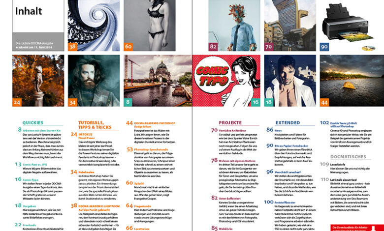 Laden Sie das Inhaltsverzeichnis, um zu erfahren, welche Themen die Ausgabe behandelt. Download Inhaltsverzeichnis DOCMA 44 (1,2 MB)Mehr