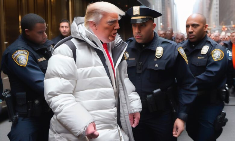 Die Verhaftung von Donald Trump auf einer Straße in New York, Papst Franziskus mit weißer Daunenjacke, eine Explosion mit schwarzer…