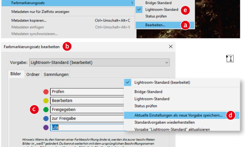 Farbmarkierungen, mit denen Sie Bilder, Ordner und Sammlungen kennzeichnen möchten, können Sie nach Belieben umbenennen. Klicken Sie im »Bibliothek«-Modul auf…