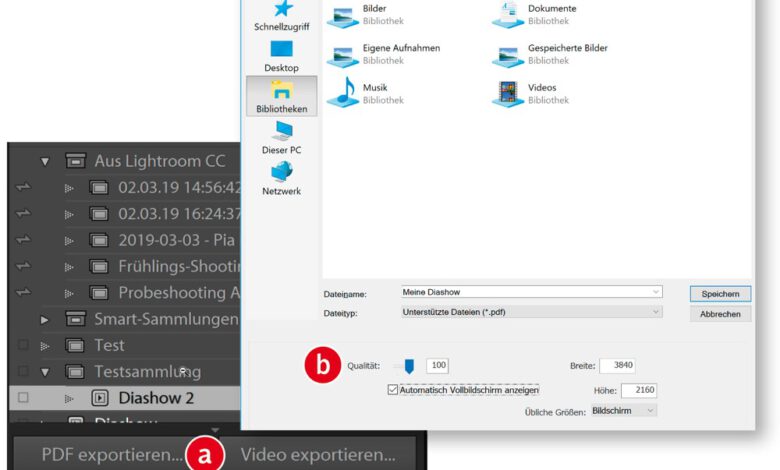 Nicht immer ist es möglich, eine Diashow direkt aus Lightroom Classic abzuspielen, wenn beispielsweise die Fotos auf einer Veranstaltung gezeigt…