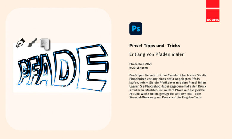Spielzeit: 6 Minuten 34 Sekunden Direktlink: www.docma.info/22036 Benötigen Sie sehr präzise Pinselstriche, lassen Sie die Pinselspitze entlang eines beispielsweise mit…