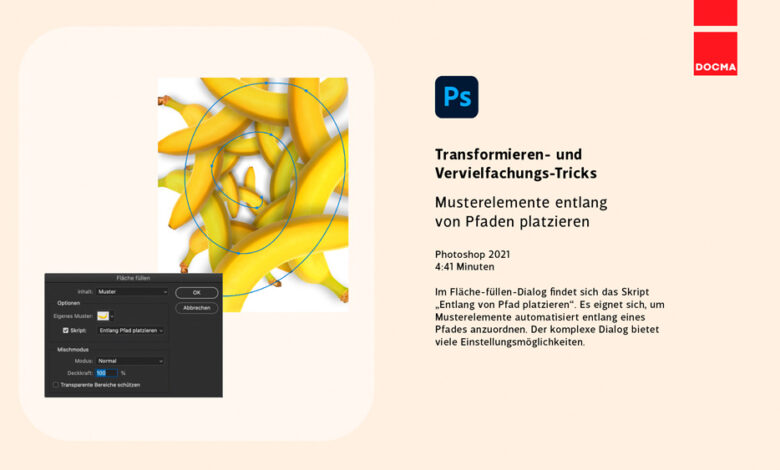 Spielzeit: 4 Minuten 46 Sekunden Direktlink: www.docma.info/22043 Im »Fläche füllen«-Dialog finden Sie auch das Skript »Entlang von Pfad platzieren«. Um…